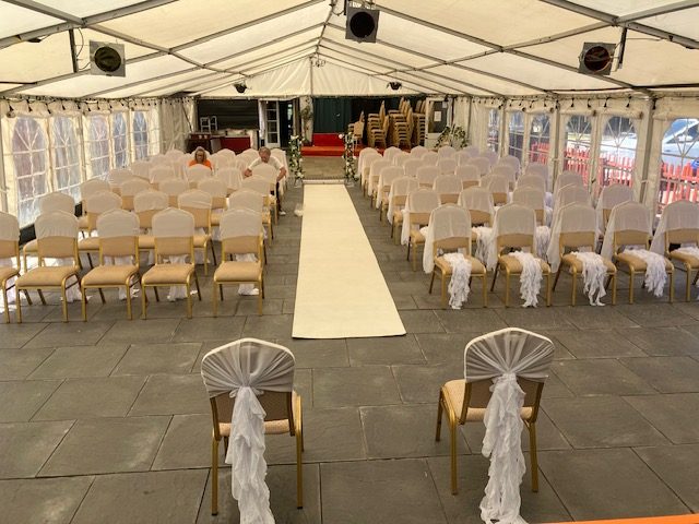 Wedding ceremony aisle with floral decorations